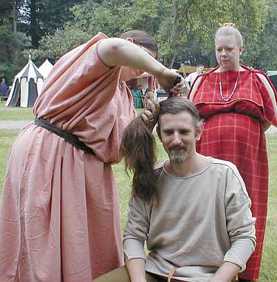 Danach ist Tom dran. Auch er wird frisiert.